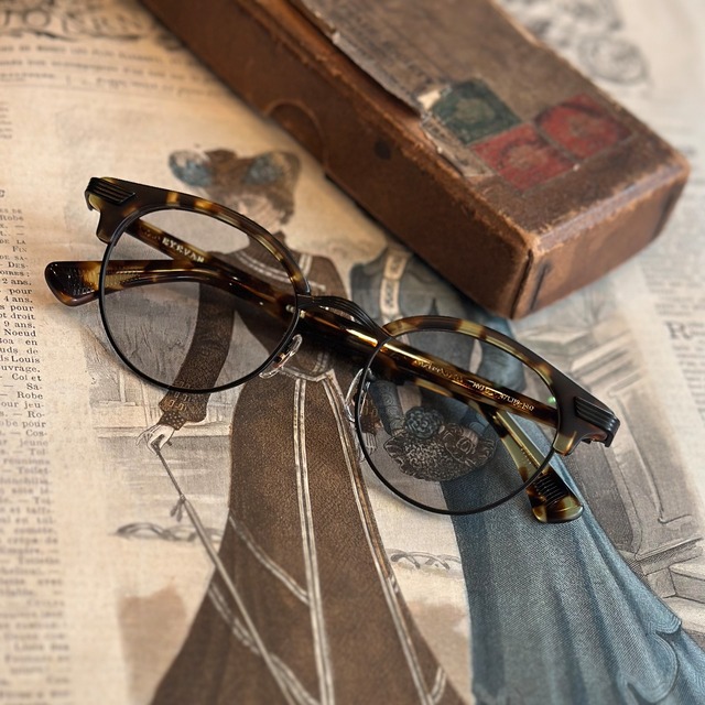 1940年代に一部のアメリカンヴィンテージで見られた最初期のサーモントフレームが着想源。 フレームからテンプルに流れるような曲智仕様のヨロイパーツは、その頃のデザインを再現しながらもEYEVANオリジナルの型から起こして作られており、モダンなレンズシェイプと合わさることでヴィンテージの持つ武骨さと現代の繊細さがMIXされた唯一無二のサーモントに。 EYEVANらしさの感じられる、個人的にも大好きなフレームです。 ※着用写真はcol.MYT着用。 ◯カラー展開◯ FRTT(French Tortise) MYT(Matte Yellow Tortise) レンズ横幅 / 47mm ブリッジ幅 / 19mm テンプル全長 / 140mm フロント横幅 / 135mm