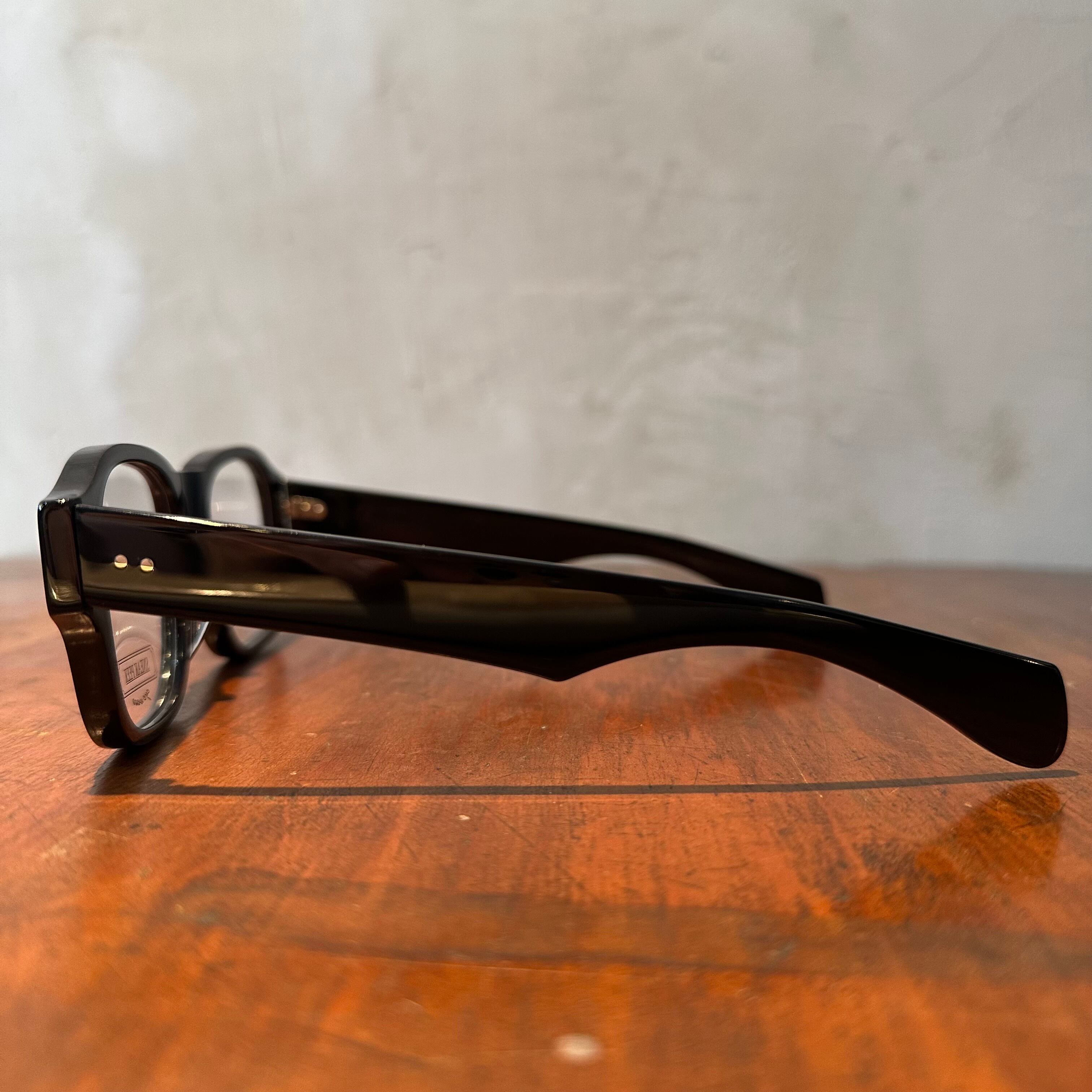 リムの細さとブリッジ・テンプルの太さのバランスが非常に綺麗で、思っている以上に掛けやすいフレームです。