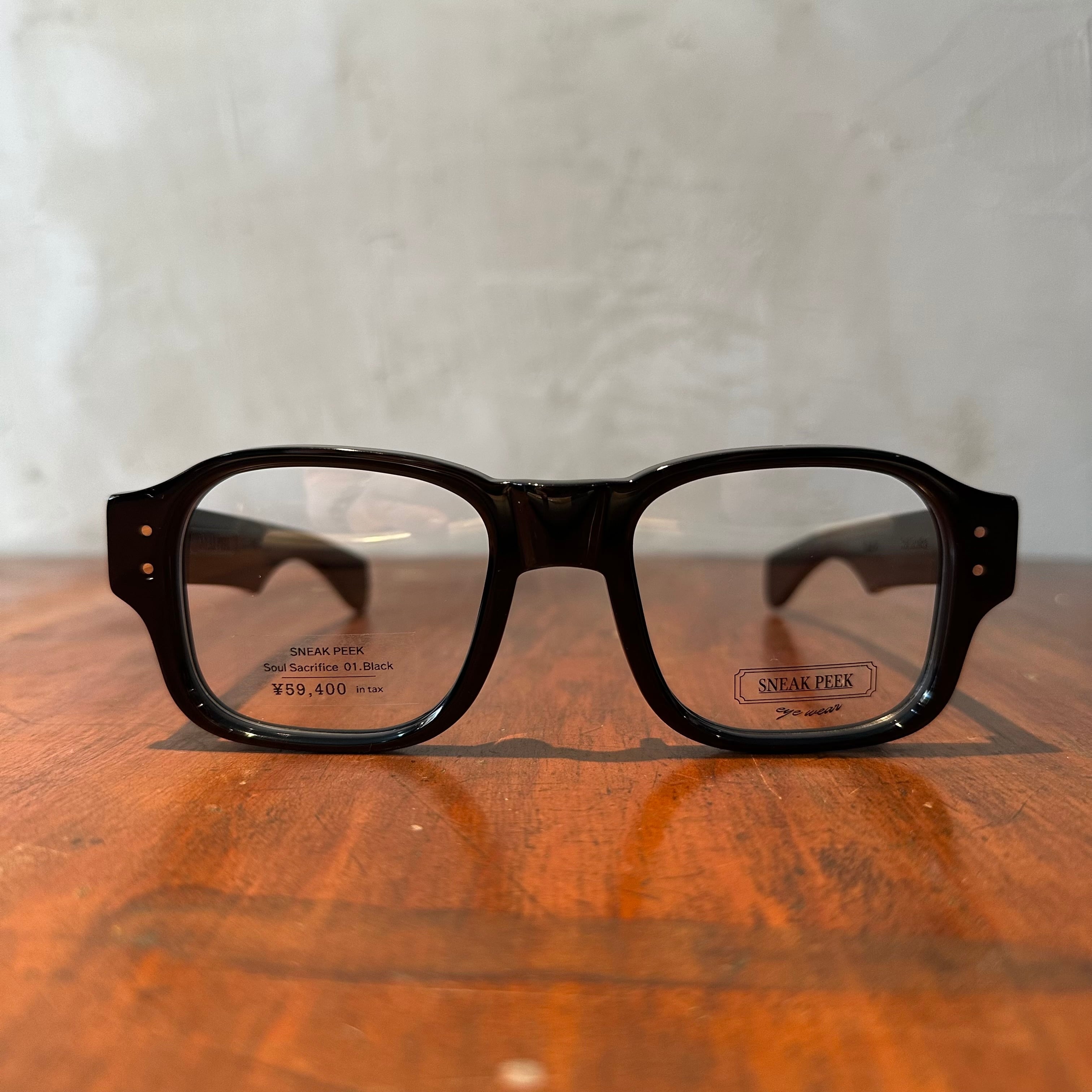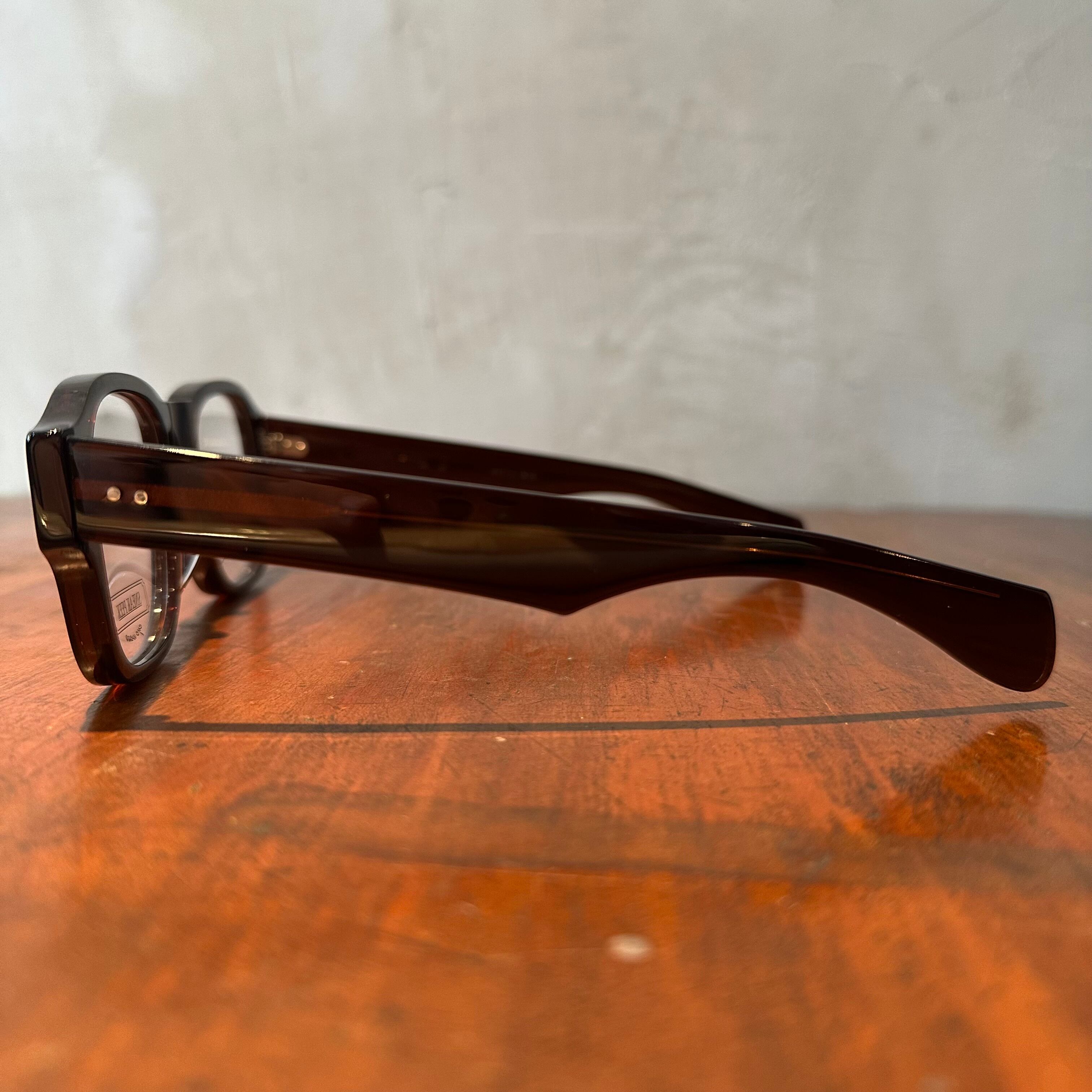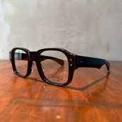 ぽってりとしたスクエアシェイプの細身のリムを繋ぐブリッジとテンプルは極太。