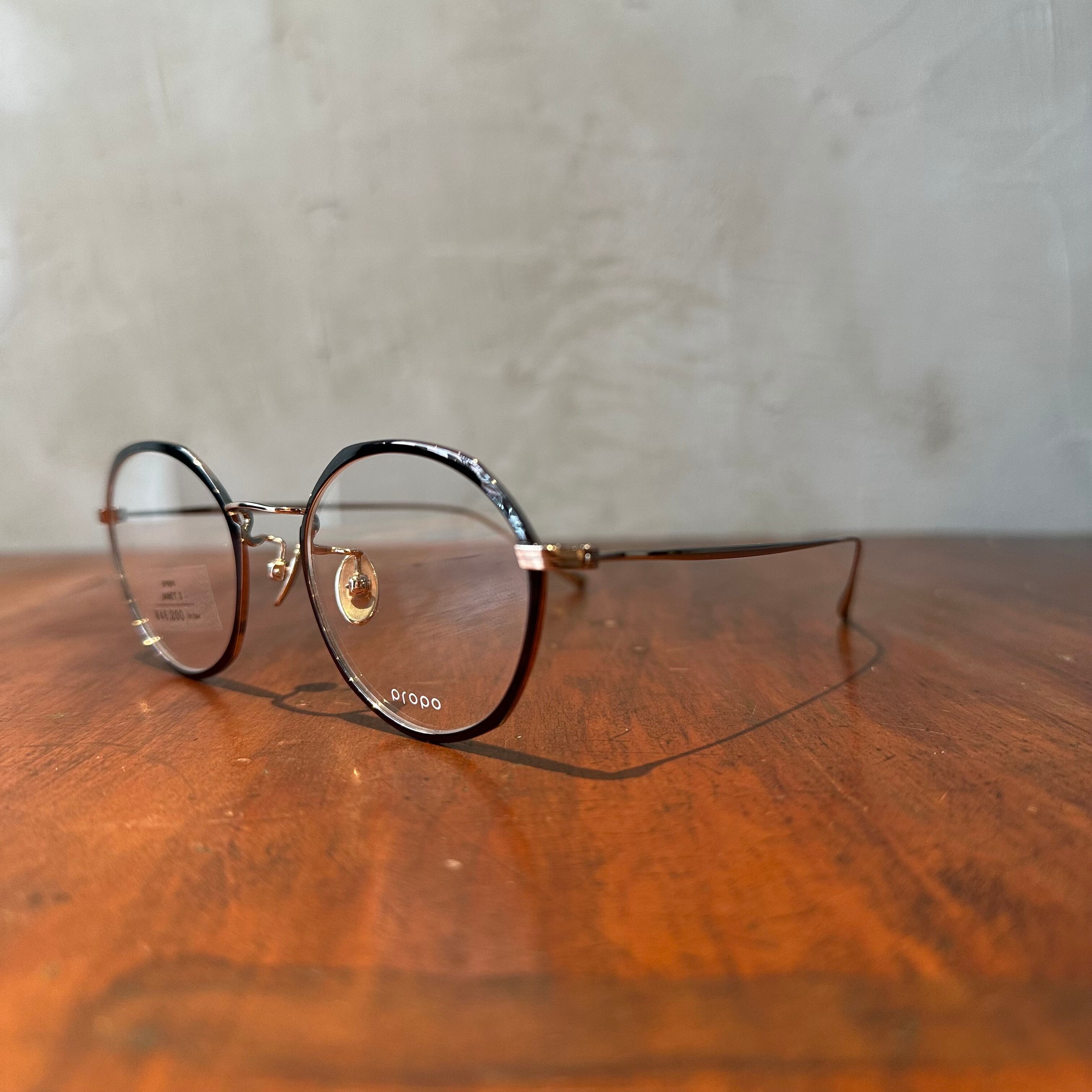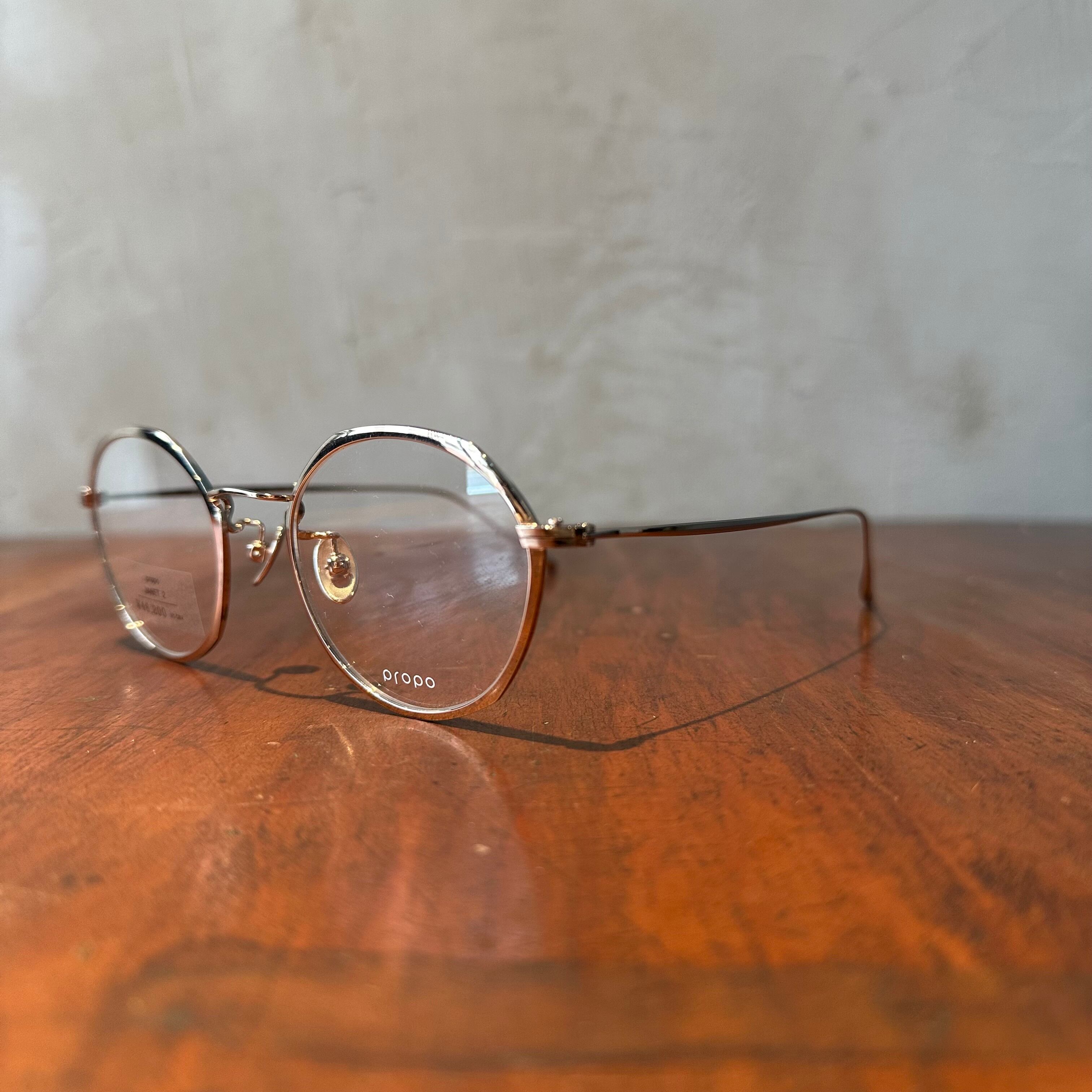 内形は丸みのあるボストン型のレンズシェイプ、外形は多角形と個性的なデザインが特徴のフレーム。