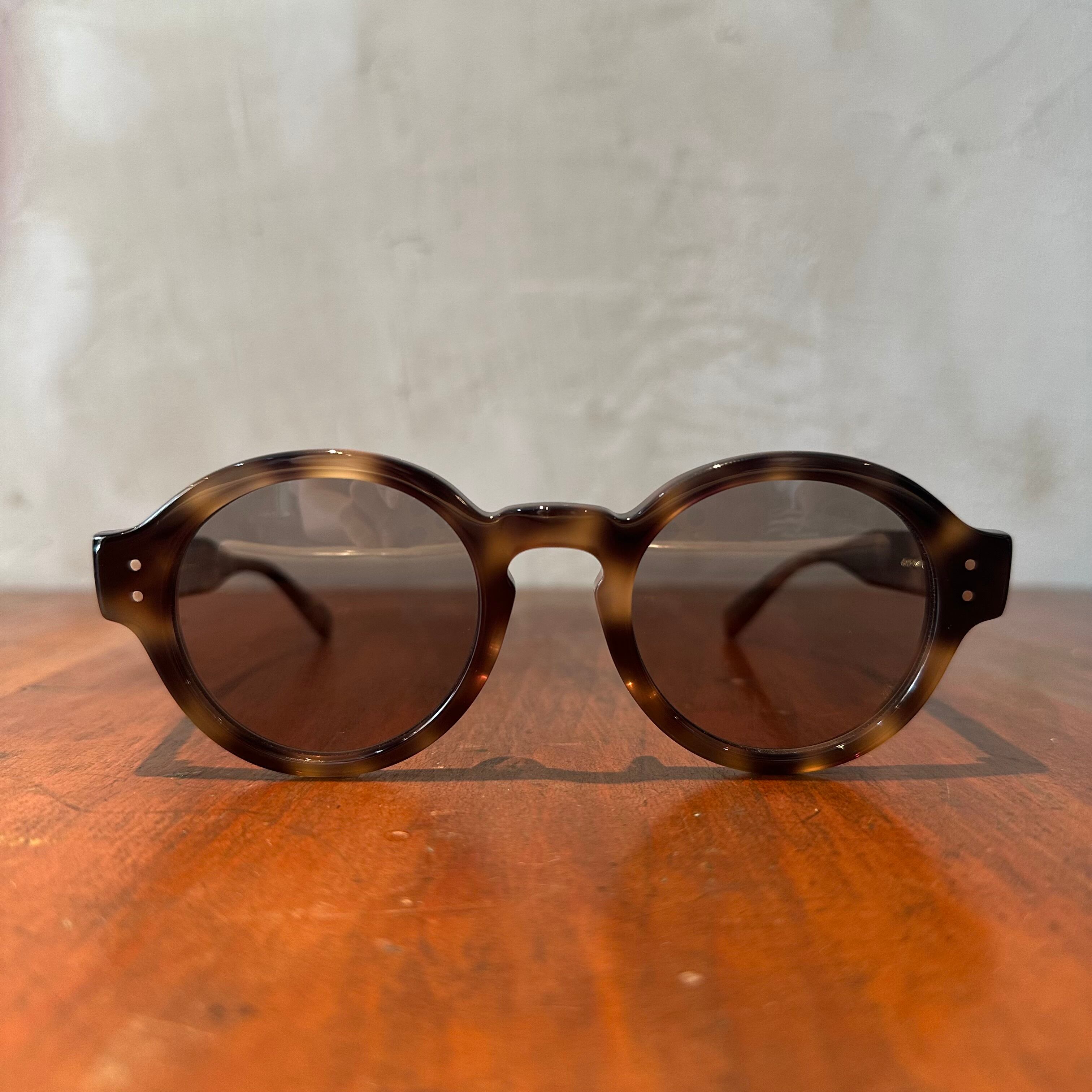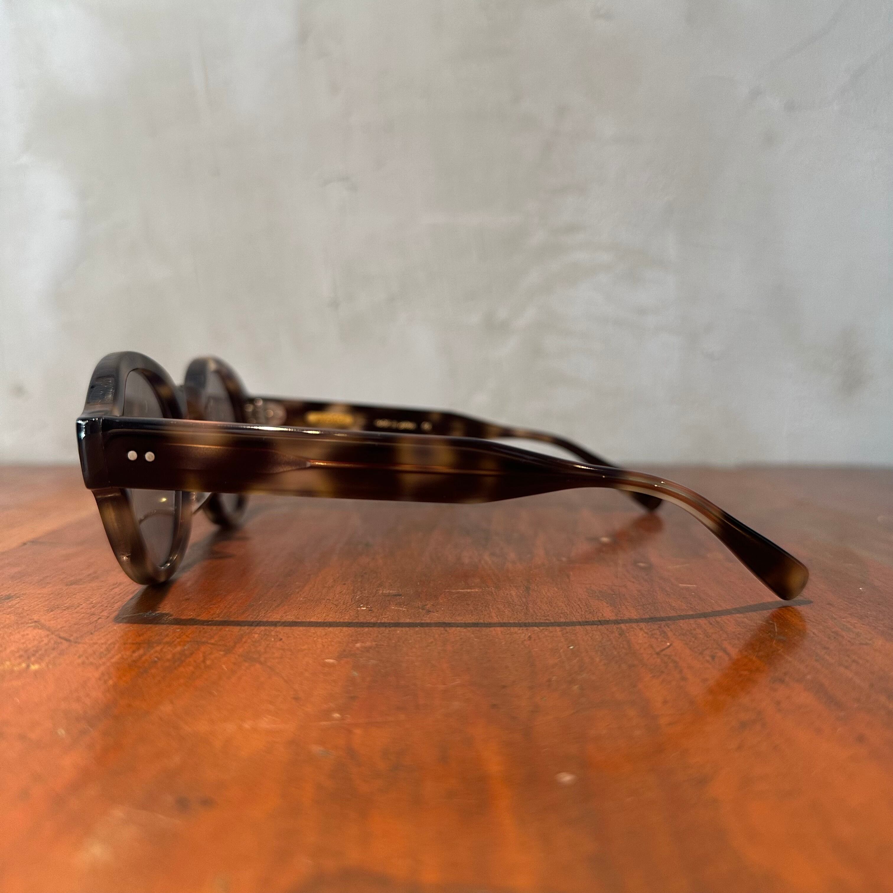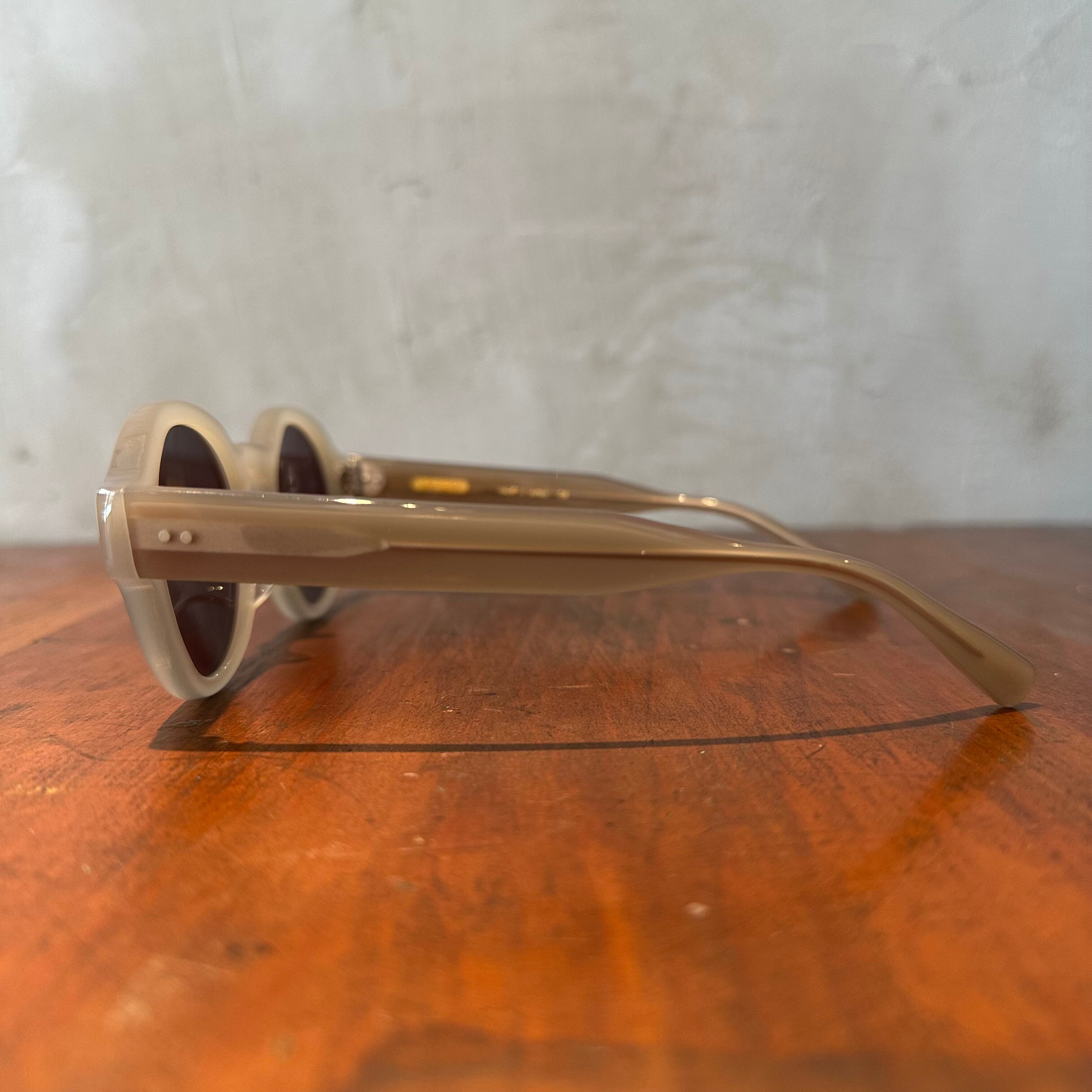 ラウンドシェイプにキーホールブリッジとクラシカルな佇まいでありつつ、モードな雰囲気を漂わすサングラス。
