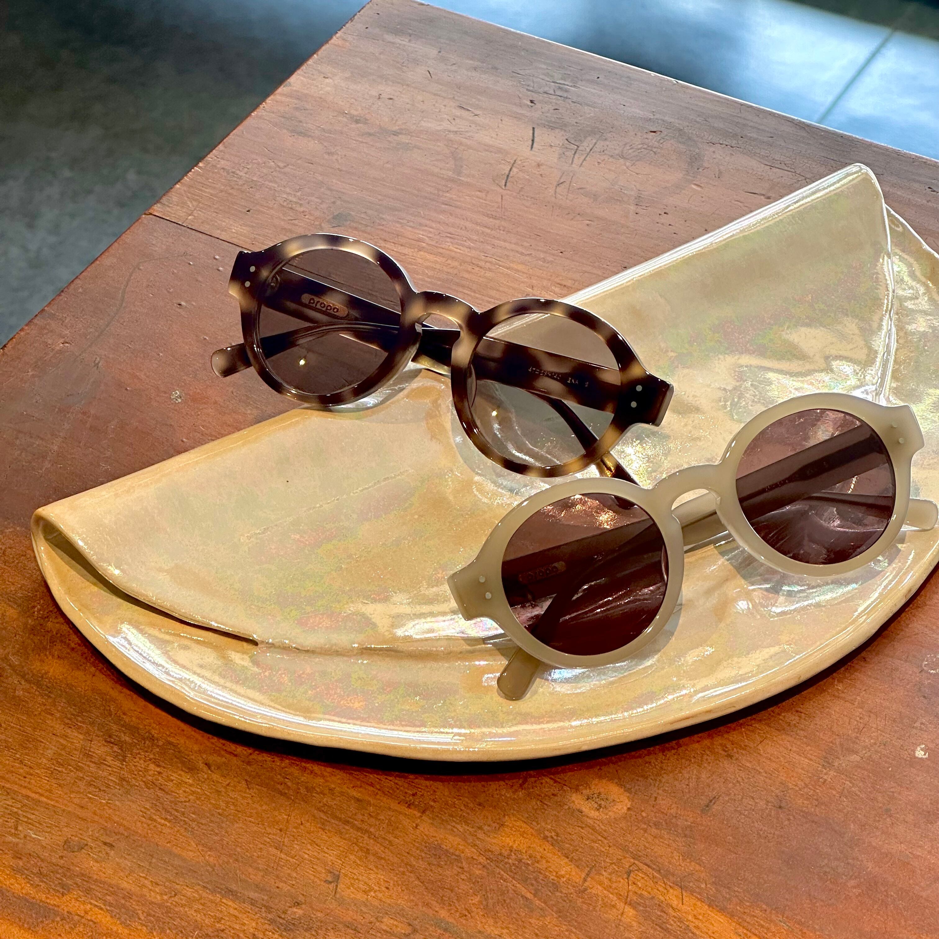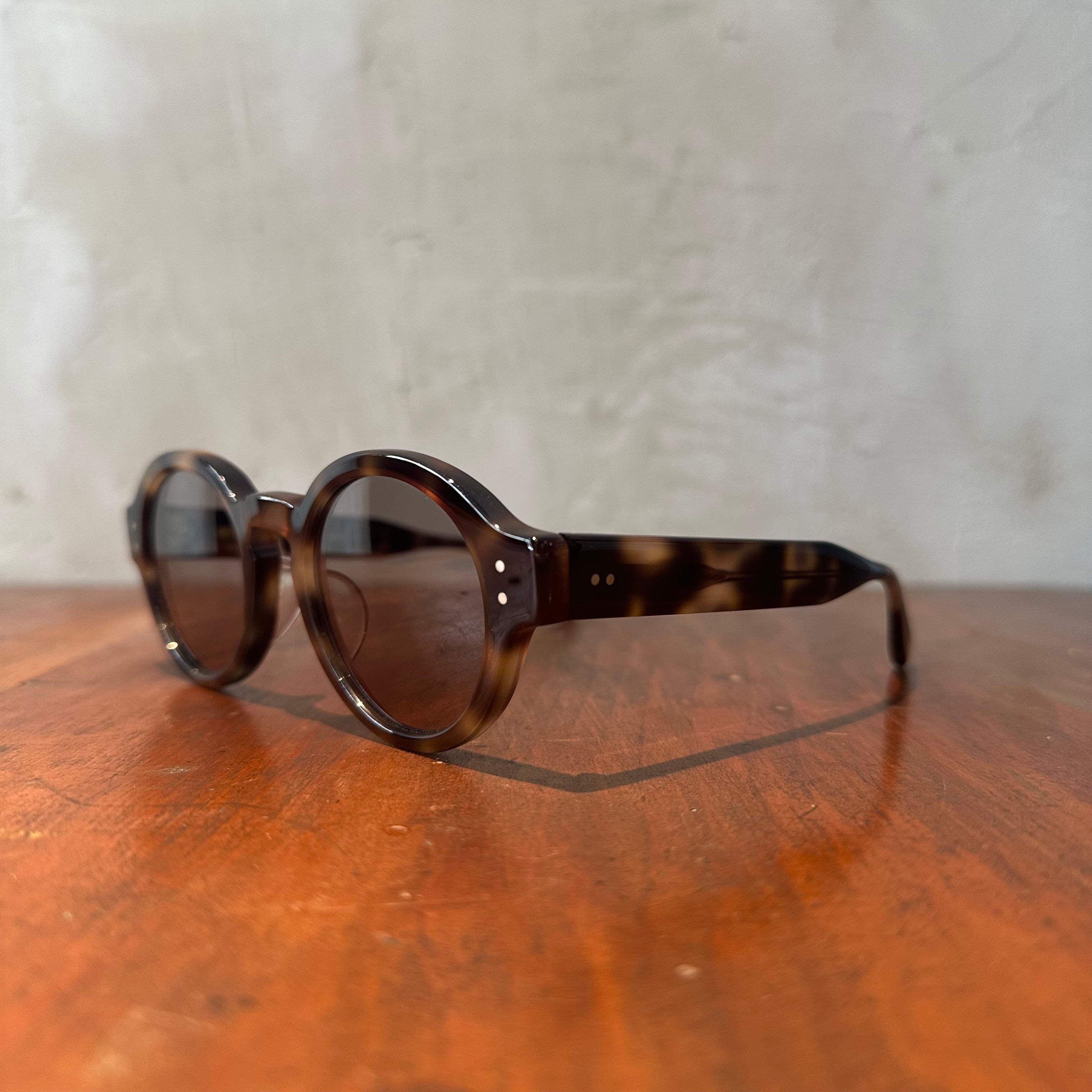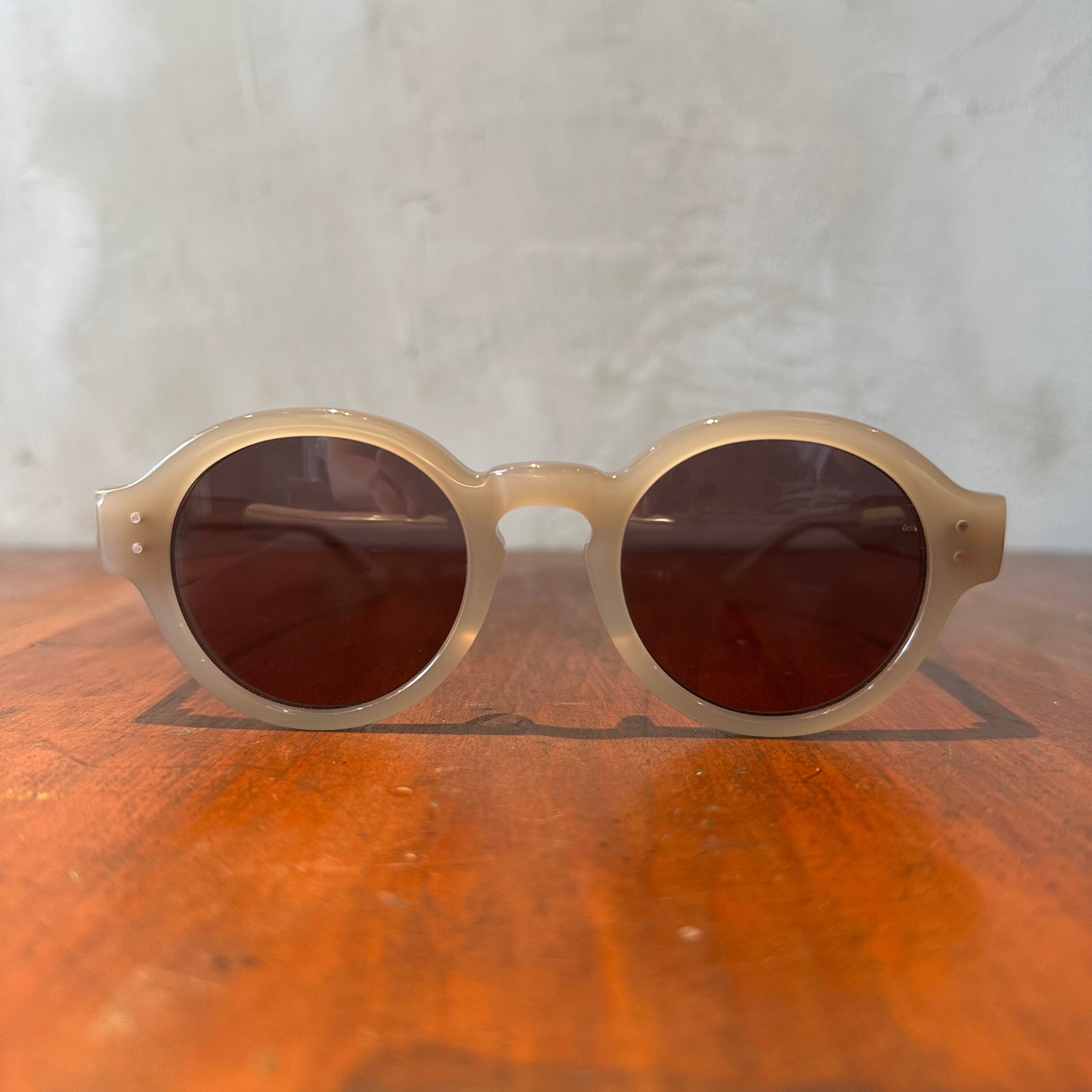 ラウンドシェイプにキーホールブリッジとクラシカルな佇まいでありつつ、モードな雰囲気を漂わすサングラス。