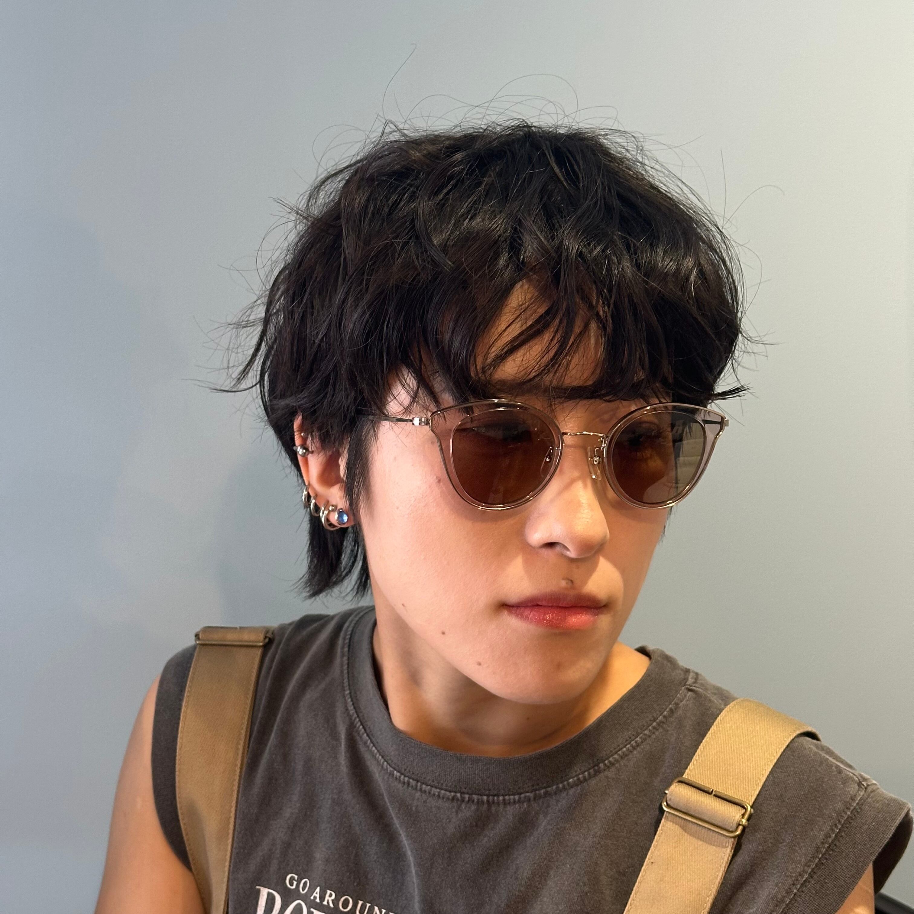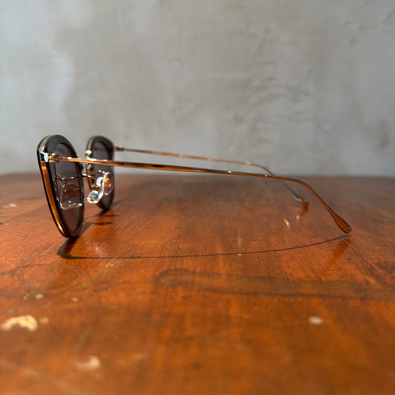 抜け感のあるクリアカラーのソフトリムがフロント形状を模っており、その周囲を覆うメタルリムがほんの少し透過して見えることで、印象をぼかすことなく纏めてくれています。