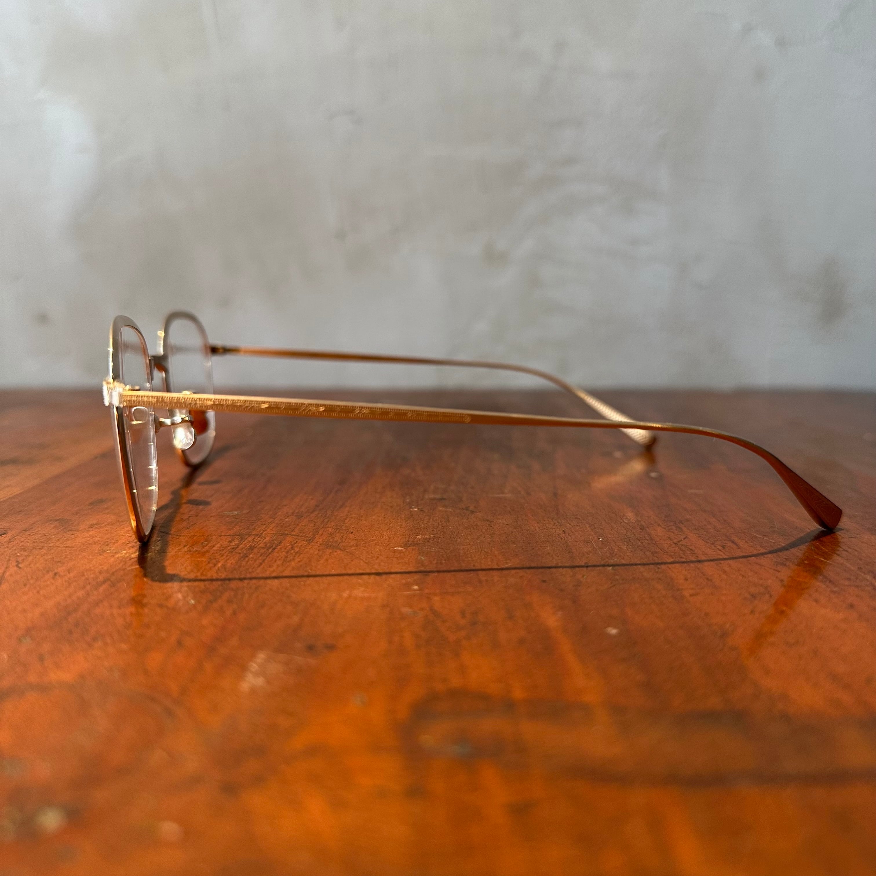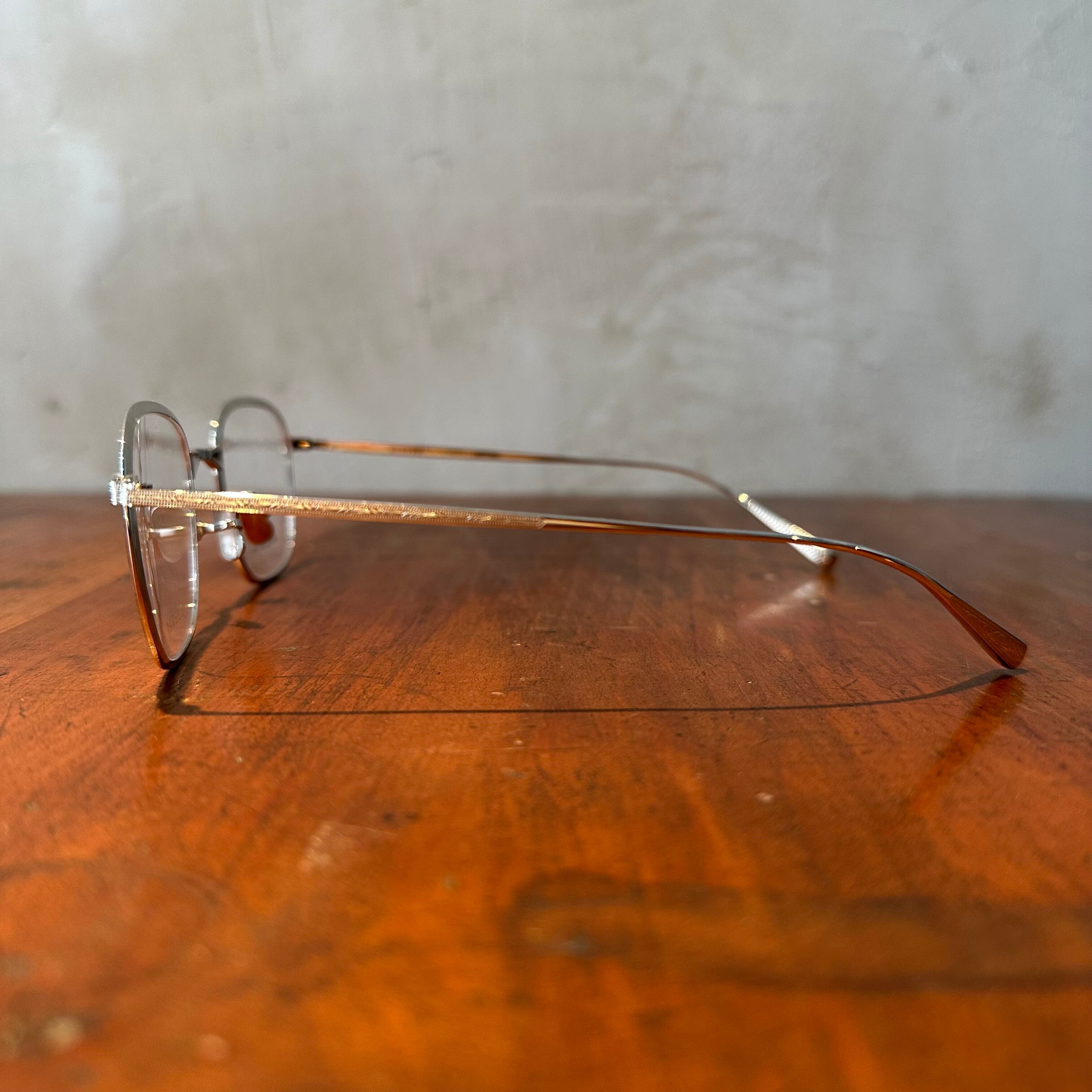 フロントに厚い金属を巻き付け削ることで、厚みの強弱をつける「カットリム」という伝統的な製法を用いたメタルフレーム。