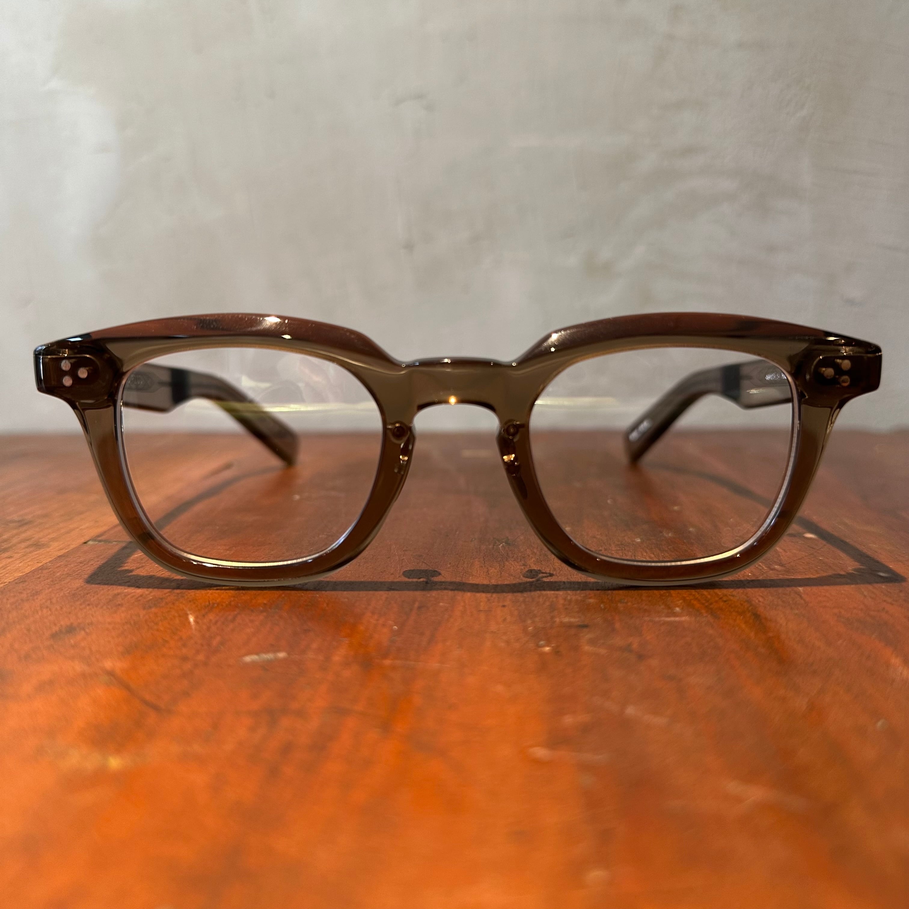 やや肉厚なウェリントンシェイプのプラスチックフレーム。