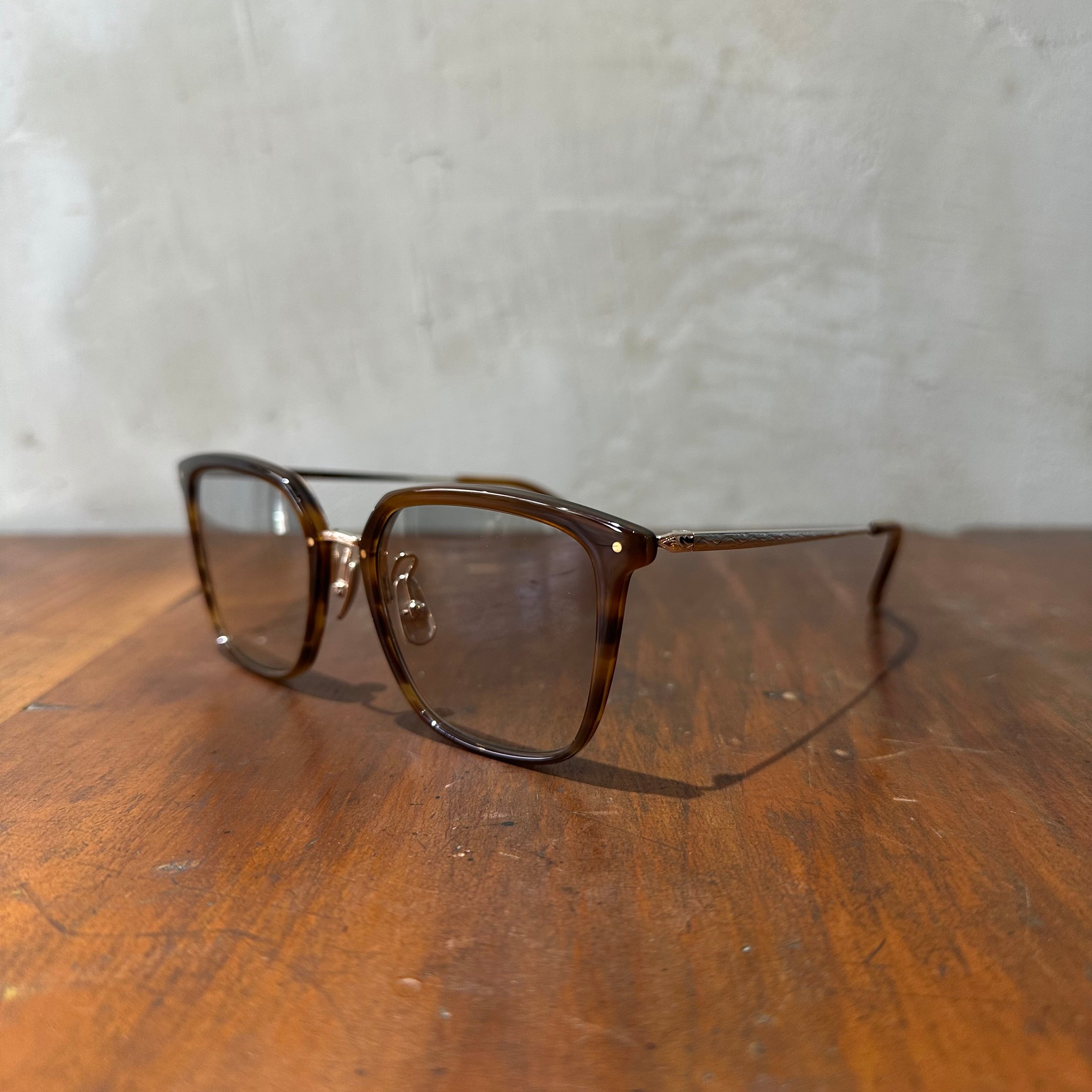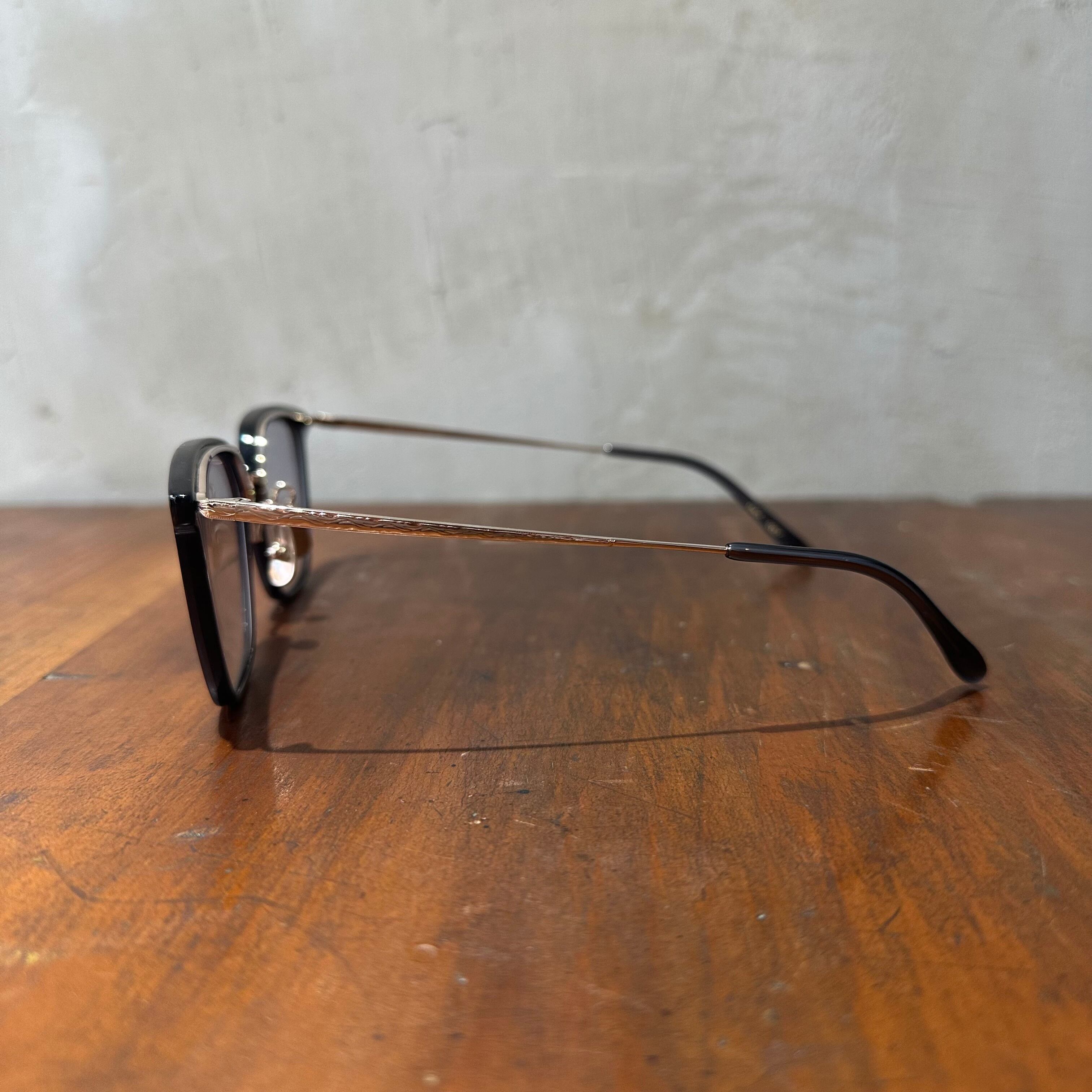 70〜80'sのヴィンテージフレームのような大振りで大胆なデザインですが、細身な作りとメタルパーツの上品さのバランスが良く、見た目以上に掛けやすいフレームです。