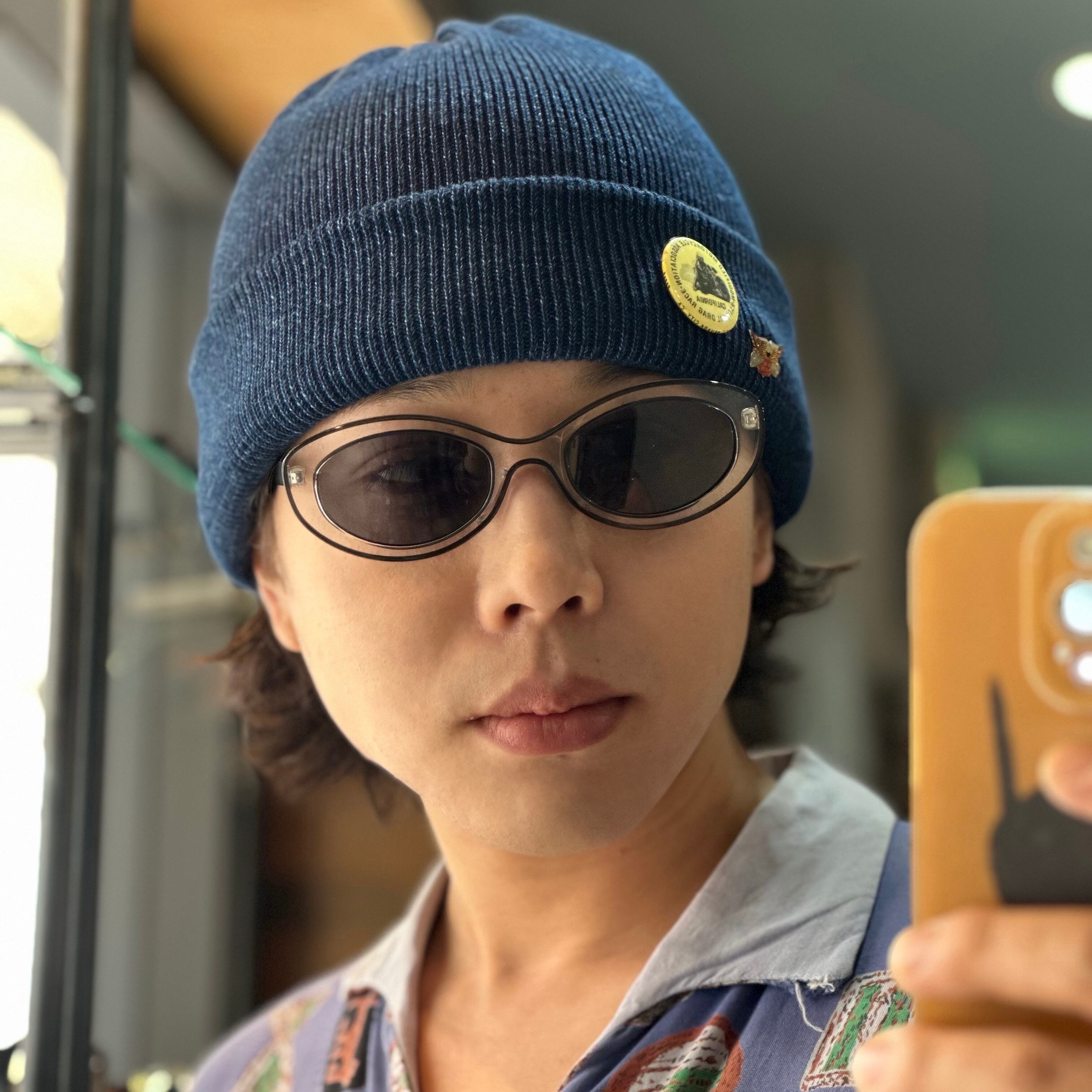 元々の天地浅めなキャットアイシェイプをベースに、テンプル素材をチタンに、フロントはサイズアップしてアップデートし、現代的な雰囲気をプラス。