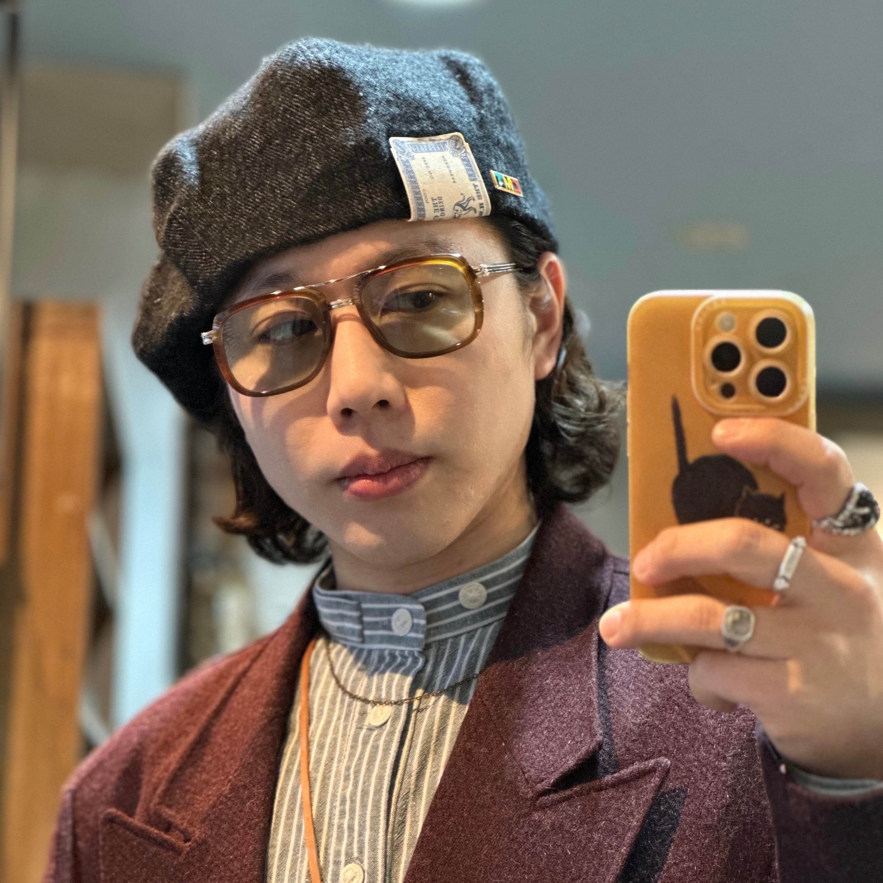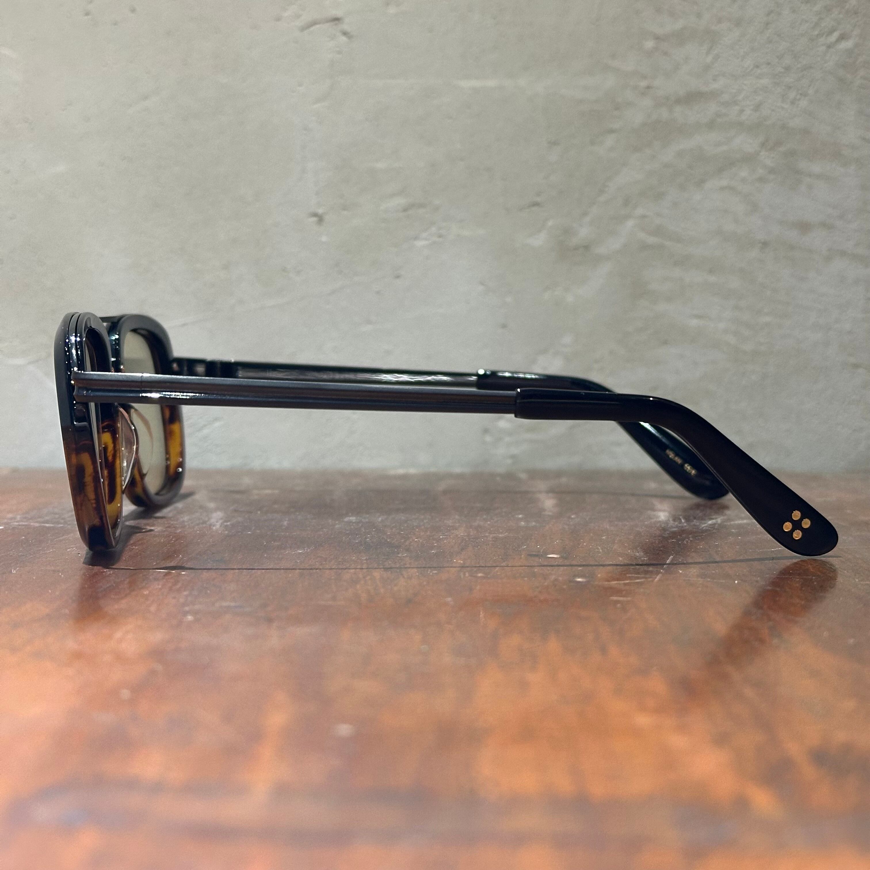 非常にクラシカルで無骨さを感じるディテールではありますが、甲丸でとろみのある光沢のアセテートリムが上品な雰囲気も与えてくれます。