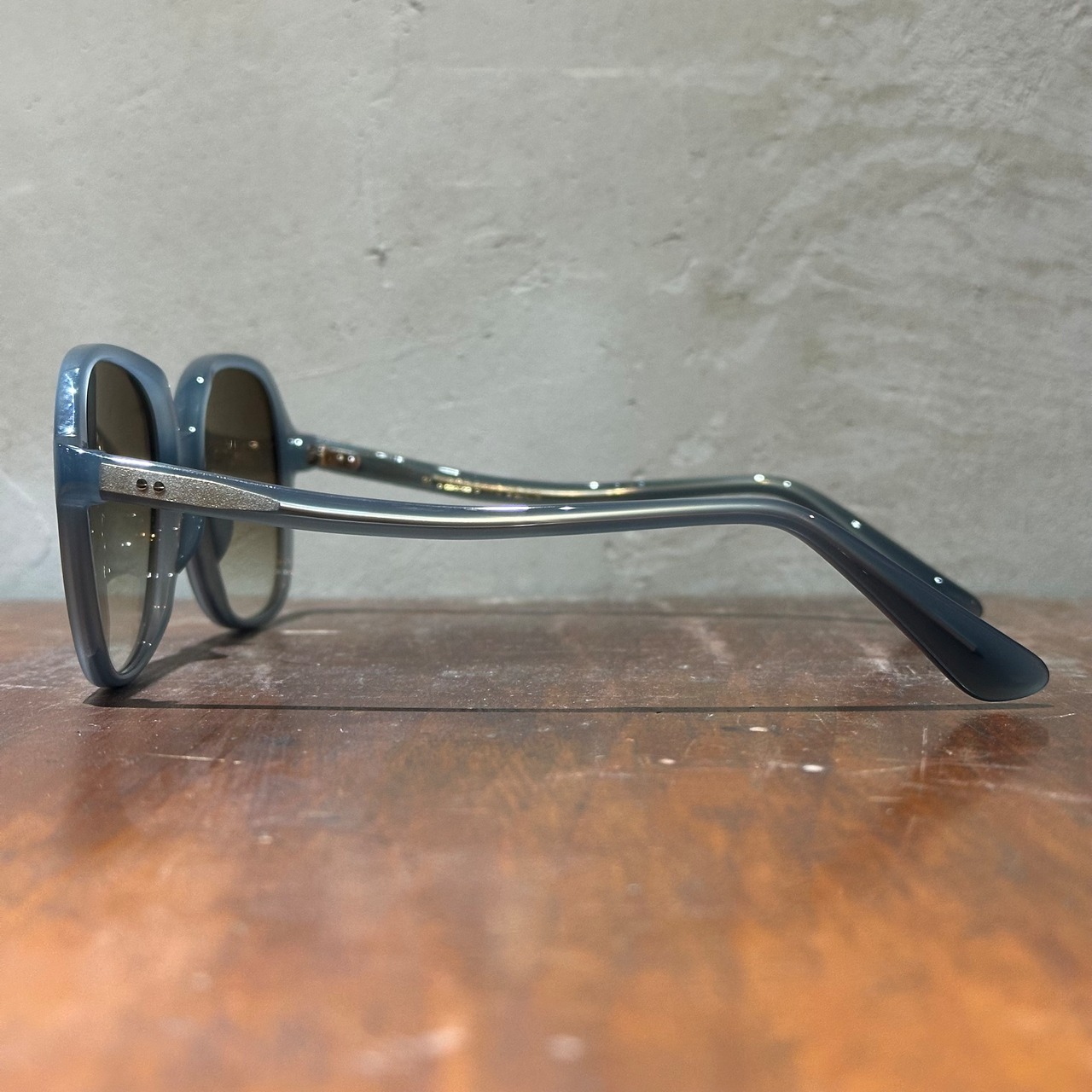 当時のフレームによく見られるテンプルの曲線や、ややドロップした丸みのあるシェイプと線の細さがフレームの印象をやわらげ、品のある雰囲気を与えてくれます。